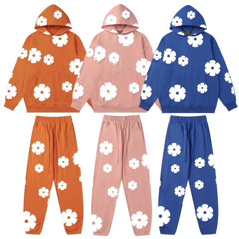 Atacado de alta qualidade DT Europeu e Americano Tendência Hoodie Foaming Denim 450g Hoodie Set