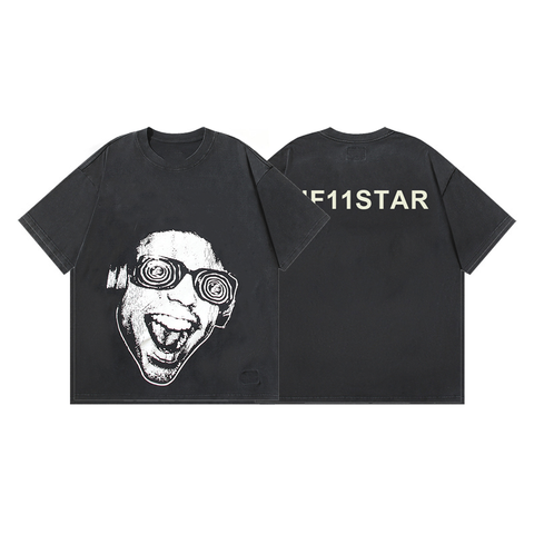 เสื้อยืดลาย Hell High Street Retro washed Star สำหรับทุกเพศเสื้อยืดผ้าฝ้ายแขนสั้น100% ทันสมัยใส่ได้ทั้งชายและหญิงทรงหลวมพอดีตัว